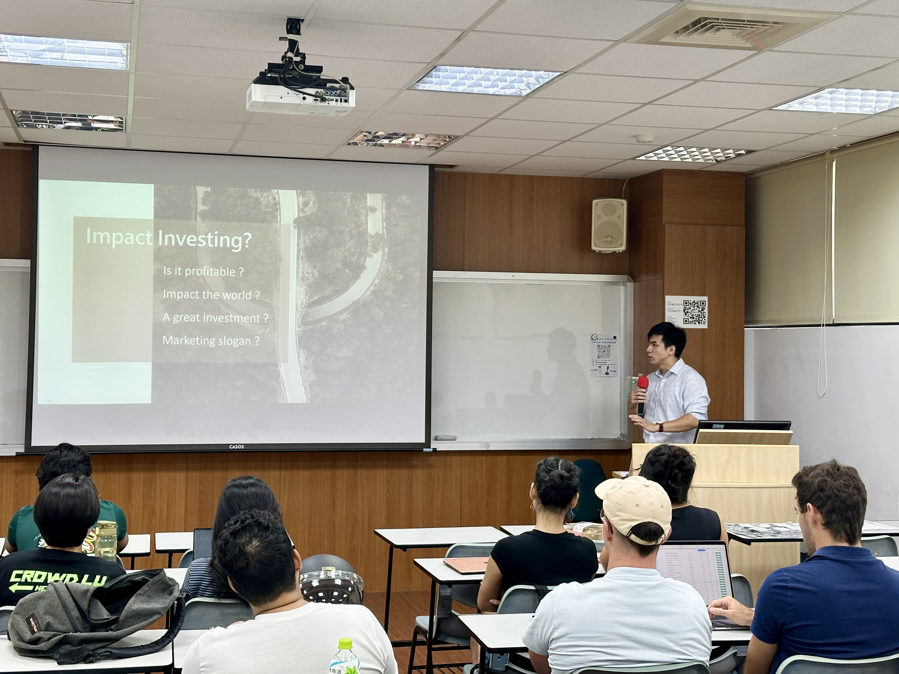 On September 16, 2025, as part of the course IB531 Business Model Development and Practice of Social Enterprises<> instructed by Professor Dr. Yih Jeng, students had the opportunity to attend a guest lecture by Mr. Yu-Te Lien, Co-Founder and Chief Operating Officer of ImpactEX Co., Ltd.. His talk, titled “The Introduction to Impact Investing and the SROI (Social Return on Investment) Method”has provided valuable insights into how businesses today can align economic goals with social responsibility.